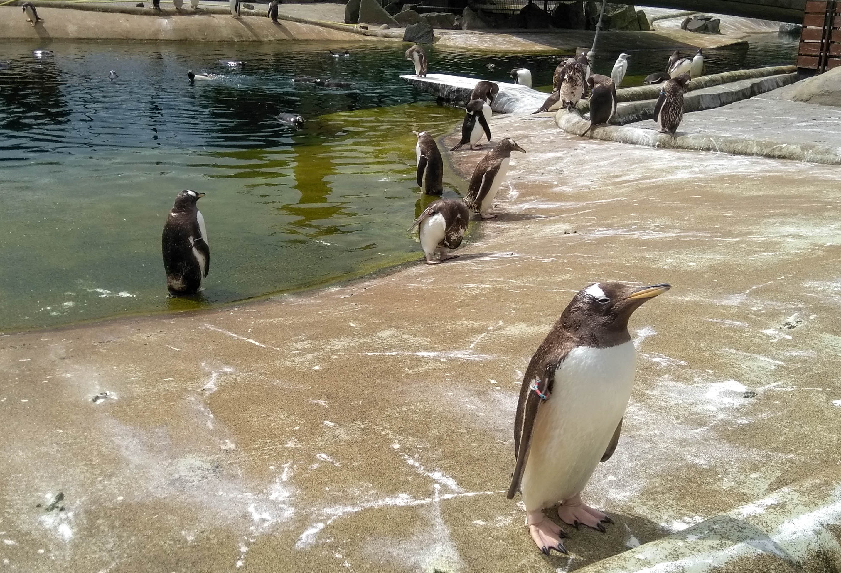 Edinburgh Zoo is one of the best in Europe for watching penguins. The Gentoo penguins are together with King penguins and Rockhopper penguins.