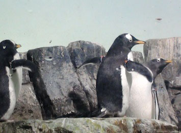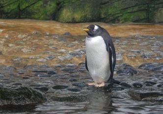 Gentoo penguins live together with King penguins and Macaroni penguins in a conditioned room. Humboldt penguins have an outside cage, but this will be moved to Planckendeal after the first quartile of 2013.