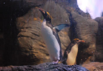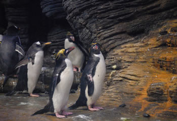 Four kinds of penguins in the Penguinarium: little, rockhoppers, king and these macaroni penguins.