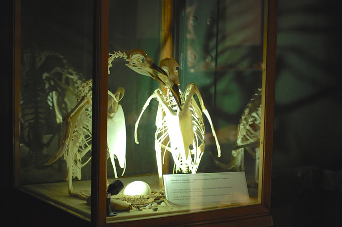 The zoo Pairi Daiza in Belgium has the skeltons of two Magellanic penguins. There are living penguins as well like the African penguins and the World of Cold with Rockhoppers, Kings and Gentoo penguins.