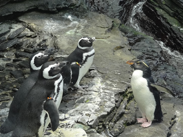 At the Oceanário in Lisbon, Magellanic penguins are together with Rockhoppers.
