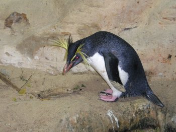 Tiergarten Schönbrunn, the Rockhoppers are together with King penguins and there area also Humboldts. These Rockhoppers are of the Northern (long-tufted) type (Eudyptes chrysocome moseleyi) just like the ones in Edinburgh.