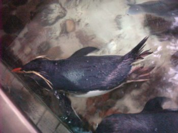 Edinburgh Zoo is one of the best in Europe for watching penguins. The Rockhoppers are together with King penguins and Gentoo penguins. The Rockhopers are of the northern kind: the long-tufted (Eudyptes chrysocome moseleyi).
