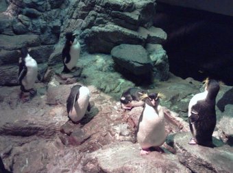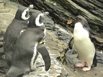 At the Oceanário in Lisbon, Rockhoppers are together with Magellanic penguins.