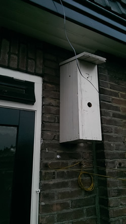 The first summer there was no bird interested, but during winter I discovered that a certain bird came in the house every night. The following summer in May and June I had the first nest. Unfortunately, the six chicks died on a very hot day, hence the advice to use thicker wood. Probably, a lighter colour of paint might help as well.