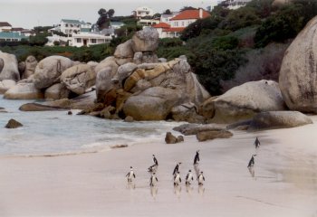 Boulders beach and Robben isle, not that far from Cape Towm. This is the jail of Nelson Mandela. For the penguins, see also the Cape penguins on the penguin pages.